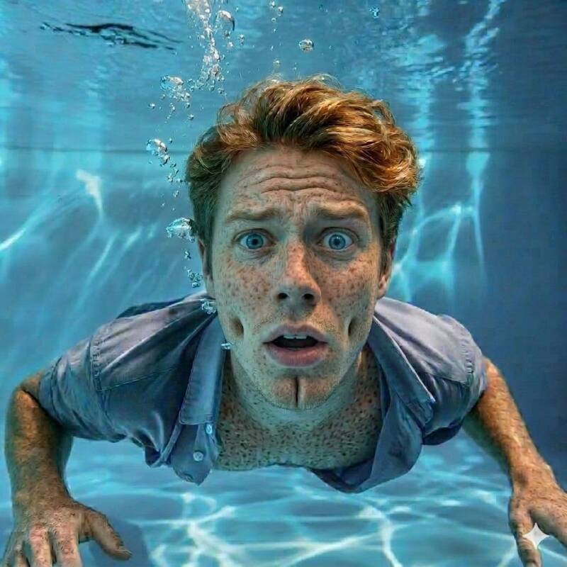 I bust into the air and drank it in with an audible gasp. With such fuel, I chugged to the shore. Then I realized I was in the university pool in the dark. Pulling myself onto the concrete under the pool lights. I was a half-hour walk to my home after I had gathered my other clothes. Someone had tried to make it look like an accidental drowning!
